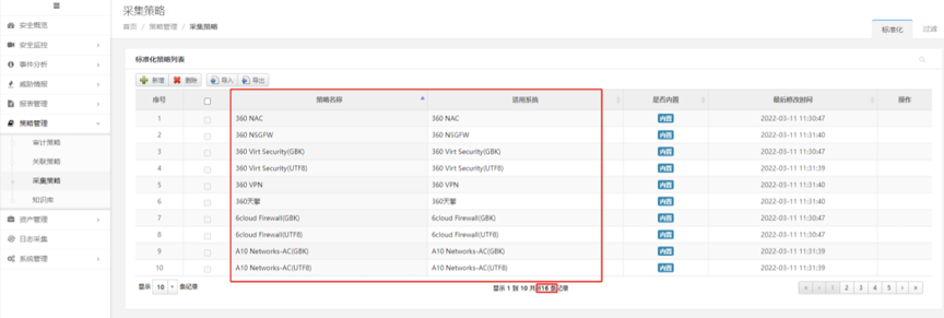 九州酷游 ku游数码DCSSA日志审计系统内置丰富的标准化策略,覆盖800余种主流的系统和设备,支持2万余种日志,精确快速匹配策略,操作便捷,一步到位,轻松解决企业面临的设备繁多、日志信息难以集中管理的困境,能帮助业务新手秒变专家。在资产管理模块维护资产时,只需要选择【开启智能绑定采集器】,DCSSA日志审计系统就会自动根据资产系统类型,精确匹配正确的标准化策略。
