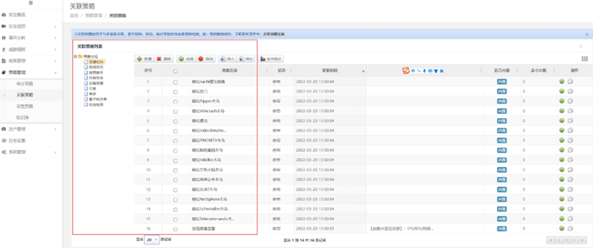检验日审功能的另一个试金石是关联分析能力。针对日志自动化、集中度、关联度不够的问题,九州酷游 ku游数码DCSSA日志审计系统支持基于规则、统计、情报的分析模型,内置丰富的安全策略模板、高效的实时关联分析能力、灵活的审计策略,充分发挥日志分析及审计机制的最大效力。帮用户实现对日志的关联性处理,让用户能有效处理纷杂无序的日志信息。